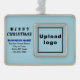 Merry Christmas! Ornament with Merry Christmas greeting texts, your business or company name, logo, address and phone number. Designs are dark blue and black texts on light blue background and on framed landscape format rectangle shape. Ornament to decorate the Christmas tree in your store, shop or office. Ornament to visually greet your customers this holiday season and to advertise your business or promote your brand name. Customise it and use it to build brand name awareness. Please check the appearance after uploading logo and typing texts. If the appearance is pleasing to you, you can place your order now. If you need to resize and move the logo and texts to fit on this ornament, please change in the design tool. You can also make other changes according to your preference in the design tool such as changing the background colour, font colour and font style. Merry Christmas! Wishing you more sales this holiday season.