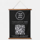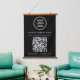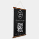 Modern black hanging tapestry sign for your business with your QR code for customers to scan for a list of your products, services and prices. Add your logo, business name, QR code, phone number and street address in simple white typography. The colours of the background and text can be changed to your branded colours by editing in the design tool or contact us at juliehortondesigns@gmail.com for further assistance.