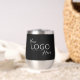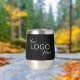 Simple and modern promotional thermal tumbler for your business, club, or other organisation featuring your logo on a black background. You can change the background colour to match your brand colours by editing in the design tool.