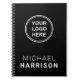 Minimal modern monogrammed black notebook with your logo, and your first name in thin white typography contrasting with your last name in a thicker white typography. You can change the colour of the notebook and text by selecting to edit in the design tool.