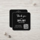 A minimalist custom business logo black and white QR code discount card for a professional business to use as a promotional tool to develop customer loyalty. Replace the image with a square photo of your logo. You can change the font, font colour, font size, letter spacing, background colour, colour of the Thank you graphic and reposition the text using the Design Tool. You can also change the social media icons so they are relevant to your business. The simple modern elegant design is yours to customise as you wish.