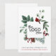 Elegant business Christmas holiday greeting card featuring your company logo framed by a watercolor of a red cardinal and seasonal winter greenery. Personalise your greeting as well as your name in simple red and white typography.