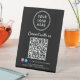 Make it easy for customers to follow, connect, and engage with your brand using this custom “Connect With Us” QR code pedestal sign. Designed on a clean black background, modern white lettering, space for your logo and Facebook and Instagram social media handle, this professional tabletop sign creates an inviting, contactless way for customers to reach your business online. Zazzle automatically generates the QR code from the website or link you provide. The prominent QR code lets visitors instantly access your website, social media, menu, services, or booking page with a single scan -- no typing required. Social media icons and your handle help boost followers while reinforcing brand recognition at the point of interaction. Perfect for retail counters, salons, cafés, restaurants, clinics, offices, events, and pop-up shops, this pedestal sign elevates your space while streamlining customer communication in a sleek, professional format.