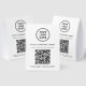 Promote your brand and make customer interactions effortless with this custom QR code paper table tent sign, perfect for salons, spas, restaurants, boutiques, medical offices, hotels, and small businesses. Designed to display your logo, business name, and scannable QR code, this clean and modern tabletop sign helps guests or clients quickly view your services, menu, prices, or booking link with just one scan. Simply add your website or link, and Zazzle automatically generates the QR code, so there’s no technical setup required. Printed on durable, affordable paper, it’s a professional yet budget-friendly option for front desks, counters, or trade show displays. The minimalist black-and-white design ensures your logo and QR code stand out clearly, complementing any brand style or décor. Easily personalize with your logo, address, phone number, website or other text to create a cohesive, on-brand customer experience that looks polished and inviting.