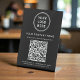 Elevate your countertop, reception desk, or checkout area with this custom QR code black pedestal sign, designed to make connecting with your business fast, simple, and professional. Featuring a clean layout, modern white lettering, and your logo and business name, this tabletop sign blends seamlessly into any retail, salon, clinic, café, office, or service-based environment. With a single scan, customers can instantly view your services, prices, menu, or offerings online. Zazzle automatically generates the QR code from the website address you provide, so there’s no extra setup or technical work required—just enter your URL and Zazzle does the rest. The sturdy pedestal design keeps the sign upright and easy to read, making it ideal for high-traffic counters and front desks. This personalised QR code tabletop sign is a smart, contactless solution for sharing information, increasing website visits, and enhancing customer experience while reinforcing your brand identity in a polished, professional way.