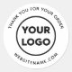 Customer thank you stickers feature your business logo surrounded by your website and thank you message in a minimal, modern all capital black sans serif font on a white background. Replace the sample company logo and text with your own in the sidebar. Use them on products or packaging for extra branding. Your logo can be in colour or black and white. Circle shaped logos will work best for the circular design area.