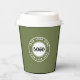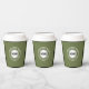 Elevate your brand with these modern minimalist paper cups, designed in a sleek black, white, and olive green palette. The clean, contemporary logo layout creates a sophisticated and professional look, perfect for cafés, events, or everyday business use. The subtle olive green accent adds a natural, calming touch while maintaining a refined aesthetic.
