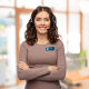 This badge looks professional and it's in keeping with my branding. The magnetic attachment is strong and stays in place all day. The quality of the materials and the colors were exactly as pictured. I couldn't be happier! The printing is clear and easy to read