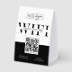 Create professional WIFI Password table top signs for your business with this minimalist table tent sign design. Featuring minimalist black and white design, space for your custom logo, QR code and fully editable text. A great way to promote your brand and make it easy for customers to use WIFI at your premises.