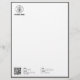 A simple custom business letterhead template in a modern minimalist style with a simple black border which can be easily updated with your company logo and letterhead footer including your company name, address, telephone, email, website and QR Code