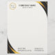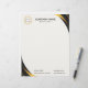 Black and gold modern professional business logo letterhead with template fields for name, company name/title, logo (photo or other graphic) and contact information. You can customise the text size, font and colour to suit your own personal preference.