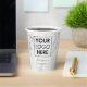A professional business logo and text paper cup with a white marble look background. Perfect for your business, office, corporate event, hospitality business etc.