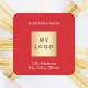 Red background, white text. Personalise and add your business name, logo and address or text.