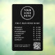 Modern black window cling sign for your business. Upload your logo and QR code for customers to scan for a list of your products, services, prices or other information. Add your business name, open hours or other text in simple white typography.