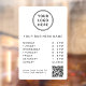 Modern white window cling sign for your business. Upload your logo and QR code for customers to scan for a list of your products, services, prices or other information. Add your business name, open hours or other text in simple typography.