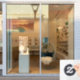 Minimalist white business opening hours window cling template with your custom logo and scannable QR code. This professional white text and transparent background window decal is a great way to display your company's opening times on your shop window - can be used for your store, salon or spa, cafe, restaurant or any other business.