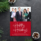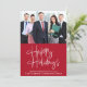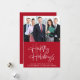 Modern professional corporate red Christmas card to show your customers appreciation this holiday season. The front features a photo of your company team, "Happy Holidays" in a stylish white script, a personalised signature greeting line and your company name. On the reverse, add your logo and address, telephone, website and other contact information.