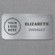 Professional name tag with your business or organisation's logo against a silver faux metallic background. Add a name and title/position in simple typography.