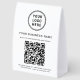 Promote your brand and make customer interactions effortless with this custom QR code paper table tent sign, perfect for salons, spas, restaurants, boutiques, medical offices, hotels, and small businesses. Designed to display your logo, business name, and scannable QR code, this clean and modern tabletop sign helps guests or clients quickly view your services, menu, prices, or booking link with just one scan. Printed on durable, affordable paper, it’s a professional yet budget-friendly option for front desks, counters, or trade show displays. The minimalist black-and-white design ensures your logo and QR code stand out clearly, complementing any brand style or décor. Easily personalize with your own logo, address, phone number, website or other tex to create a cohesive, on-brand customer experience that looks polished and inviting.