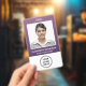 Business Logo QR Code Barcode Purple Photo ID Badge