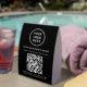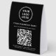 Promote your brand and make customer interactions effortless with this custom black QR code paper table tent sign, perfect for salons, spas, restaurants, boutiques, medical offices, hotels, and small businesses. Designed to display your logo, business name, and scannable QR code, this clean and modern tabletop sign helps guests or clients quickly view your services, menu, prices, or booking link with just one scan. Printed on durable, affordable paper, it’s a professional yet budget-friendly option for front desks, counters, or trade show displays. The minimalist black-and-white design ensures your logo and QR code stand out clearly, complementing any brand style or décor. Easily personalize with your own logo, address, phone number, website or other tex to create an on-brand customer experience that looks polished and inviting.