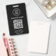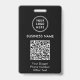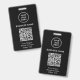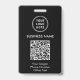 Modern and professional black ID badge for your business or event featuring your logo and QR code. Add your business or event name and other information in simple white typography.