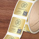 Give your brand a sleek, professional edge with these gold custom logo and QR code stickers, perfect for small businesses, creators, and service professionals. Upload your business logo and QR code to create polished labels that make it easy for customers to connect instantly with your website, social media, or online shop. Featuring an elegant gold gradient background and clean minimalist layout, these stickers are ideal for product packaging, marketing materials, thank-you cards, and shipping boxes and can be printed on a convenient roll for quick application.