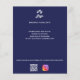 Navy blue background, white text. Personalise and add your business logo, name, address, your text, your own QR code to your instagram account.