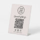 Make it effortless for customers to connect with your brand using this modern light pink tabletop pedestal sign. Designed for countertops, checkout areas, and event tables, this sign features a clean QR code layout that instantly directs customers to your website, menu, booking page, or Facebook, Instagram, and TikTok social media profiles. Zazzle automatically generates the QR code from the website link you provide, ensuring accuracy and a seamless setup. The minimalist design keeps your branding front and center, with space for your logo at the top and a clear call-to-action that encourages engagement. Perfect for retail stores, cafés, boutiques, salons, trade shows, pop-ups, and professional events, this sturdy pedestal sign stands upright and remains highly visible without taking up valuable space.