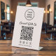 Make it effortless for customers to connect with your brand using this clean, modern light pink tabletop pedestal sign. Designed for countertops, checkout areas, and event tables, this sign features a bold QR code layout that instantly directs customers to your website, menu, booking page, or Facebook, Instagram, TikTok and X social media profiles. Zazzle automatically generates the QR code from the website link you provide. The minimalist design keeps your branding front and center, with space for your logo at the top and a clear call-to-action that encourages engagement. Perfect for retail stores, cafés, salons, trade shows, pop-ups, and professional events, this sturdy pedestal sign stands upright and remains highly visible without taking up valuable space. Customize it with your brand logo, social media handle, and preferred messaging to create a polished, cohesive look that reinforces your brand at every customer touchpoint.