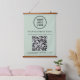 Modern light sage green hanging tapestry sign for your business with your QR code for customers to scan for a list of your products, services and prices. Add your logo, business name, QR code, phone number and street address in simple typography. The colours of the background and text can be changed to your branded colours by editing in the design tool.
