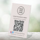 Modern light pink table top pedestal sign for your business. Upload your logo and your website's QR code that your customers can scan for a list of your products, services, prices, etc. Add your company name, phone number, website or other information in simple typography. Add your instagram and facebook handles for customers to follow you on social media.