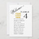 Welcome in stylish script to assist your guests find their table with these elegant modern seating plan cards with guests names. Double sided cards so guests can look from both, front or back for their names. White background and black text with a touch of a drop shadow on the table number as well as room for your logo. Can change background color to match your theme in the Edit function. The card prints on the front and back (double-sided). If you have any design questions, just send a chat and we'll be delighted to assist.