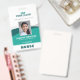 Create your own custom professional name badges utilising a simple vertical template layout that enables you to insert a staff photo into, business logo and other company information. The teal modern design of these personalised employee name tags and badges indicate a theme for healthcare staff such as physicians, nurses, doctors, and other medical personnel, but the information and branding colour scheme can simply be altered to fit your small business / corporate needs just right. Click on the svg wave graphic and choose up to 4 custom colours (these options can be revealed by using the design tool). While the classic light and dark teal design reads “Licensed Practical Nurse LPN” in the text field for the job title and position, change it to read “Registered Nurse RN”, “Nurse Practitioner NP” or any staff position (ie. emotional support, creative team, nursing home provider etc.). Insert your custom name, photo/staff picture, clinic/hospital address location, company logo or other needed info. If by change you'd like to add a caduceus symbol to these modern nurse name tags, customise this design further to reveal that option on the back of these professional name tags, and recolor it, and even move it to the front if desired. Category: DIY corporate name tags badges; nursing template name tags badges; and personalised nurse id medical name tags badges. Classic theme colours: dark teal blue, light teal green, turquoise, aqua, grey/grey, black and white.
