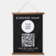 Customisable Template Upload Your Business Company Logo Here Add Text QR Code Elegant Modern Wood Topped Vertical Black One Panel Wall Tapestry.