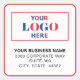 These custom branded square white business return address labels feature your professional business logo design. Simply add your company logo to the rectangular red and blue placeholder image and personalise with your business name and address.