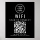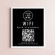 Modern and simple black poster sign to provide your customers, clients or guests a seamless connection to your wifi network. Upload your logo and wifi QR code and add any other details, such as the network's name and password.