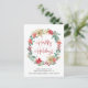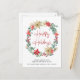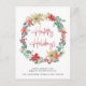 Corporate Christmas postcard for your company or organisation featuring a watercolor wreath of a red and white poinsettia floral blooms and eucalyptus and seasonal greenery. "Happy Holidays" is written in a contemporary red script and you can personalise a happy new year or other greeting and your business' name underneath in simple modern typography. On the reverse side, add an additional message of customer appreciation and your business logo.
