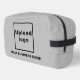 Grey dopp kit that you can customise by uploading your business logo and typing your business name. You can include it in your promotional products, giveaway items or gifts to your customers or clients, a marketing strategy to advertise your business or to promote your brand. Accessory that you can use to build and maintain brand name awareness. Please check the appearance of the front and back sides after uploading your business logo and typing your business name. If the appearance is pleasing to you, you can place your order now. If you need to resize and reposition the logo and name of your business to fit in the template, please adjust in the design tool. You can also change the font style, font colour and background colour in the design tool.
