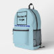 Light blue backpack that you can customise by typing your business name and uploading your business logo. Bag that you can include in your promotional products, giveaway items or gifts to your customers or clients, a marketing strategy to advertise your business or to promote your brand name. Customisable backpack that you can use to build brand name awareness. Please check the appearance after typing your business name and uploading your business logo. If the appearance is pleasing to you, you can place your order now. If you need to resize and reposition your business name and logo to fit in the template, please adjust in the design tool. You can also change the background colour, font colour and font style in the design tool.