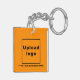 Orange square acrylic keychain that you can customise to put your business name and logo. Font colour is black. An accessory that you can give it as giveaway item to your customers. Keychain that you can include in your marketing materials to advertise your business or in your promotional products promote your brand name to customers. Keychain with your business name and logo to build brand name awareness. To customise this square keychain, upload your business logo and type your business name then check the appearance in front and back sides. If the appearance is pleasing to you, you can place your order now. If you need to resize and move the logo and texts to fit on this keychain or on other styles and shapes that you will choose, please change in the design tool. You can also make other changes according to your preference in the design tool such as changing the background colour, font colour and font style.
