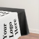This business tablecloth is black and white. It has a display image that you can replace with your company logo. It will be in a pattern on the tablecloth. There's also text you can edit to show your business name or a custom message.