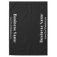 Four lines of white display text are on this black tablecloth. You can make it a business tablecloth by editing the text to show a custom message such as your business name and website.