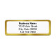These business return address labels have four lines of text. The top line is in bold for the business name. Three additional lines of text are available for your street address, city, state, zip code, and phone number. The label has a faux (not foil) gold border.