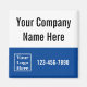 This blue and white magnet has display text you can edit to meet your needs. You can add your company name, phone number, and business logo. The top half is white with black text for your company's name. The bottom half is deep blue with white text for the company's phone number and a place to add your company's logo.