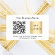 A transparent background, add your brand colour in the design tool. Personalise and add your business name, your own business logo, qr code to your website and a text. Black text.