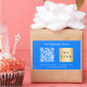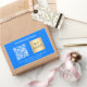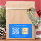 A light, bright blue background. Personalise and add your business name, your own business logo, qr code to your website and a text.  White text.