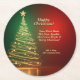 Business Name Message Green Gold Christmas Tree Round Paper Coaster