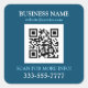 Business Name Promo, QR Code, Ocean Blue & White Square Sticker