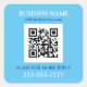 Business Name Promo, QR Code, Sky Blue & White Square Sticker